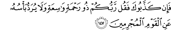 If they accuse you of lying, say, "Your Lord is Possessor of infinite mercy, but His wrath cannot be averted from the guilty people."