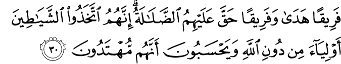 Some He has guided, and some have deserved misguidance. They have adopted the devils for patrons rather than Allah, and they assume that they are guided.